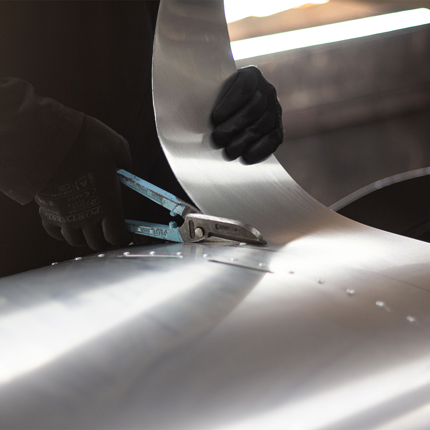We’ve continued this tradition using a combination of our own processes and British-made parts. Many of the techniques we practice have been around for as long as motoring itself: Every chassis is fabricated on-site using jigs, and the eye-catching aluminium bodywork of the V-Sport is formed, hand-worked, drilled and riveted by us. The upholstery, by contrast, is a result of collaboration with a range of local craftspeople, with whose help we’re able to create an aesthetic that’s reminiscent of the classics.